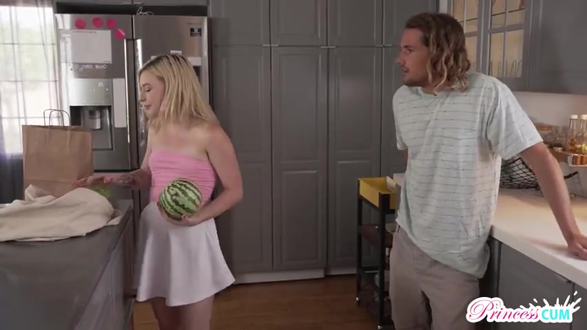 Tyler Nixon just cannot help but have the hots for his curvy and cute sister, Minxx Marii. He stumbles across Minxx putting groceries away and stands there staring at the line of her body and the way her miniskirt rides up to show off her lovely ass and thong. Minxx eventually notices that Tyler is there, but instead of getting offended that he’s staring and chewing him out, she decides to play up to it. She grabs a pair of watermelons and holds them up to her chest, commenting that if she had boobs like that then her would never go hungry and she could even feed the needy. Tyler claps back to tell Minxx that she isn’t breading material, but Minxx has a ready retort. She grabs a banana and talks to it like she would a lover before pressing it to her pussy to masturbate. Weirded out, Tyler jets.