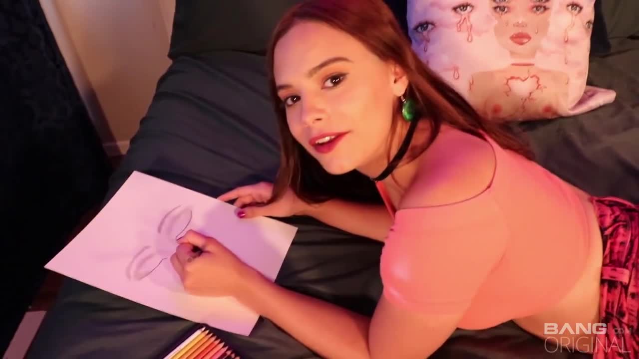 Violet Starr loves to hang out at the house and pass her free time by sketching portraits in her sketch book. Her brother moved in and he teases her about her home-body habits. He’s been eyeing her slutty booty shorts though and wants to give that pussy a try for himself! He fucks her pussy raw in her own bed! He skirts his cum all over her perfect titties!